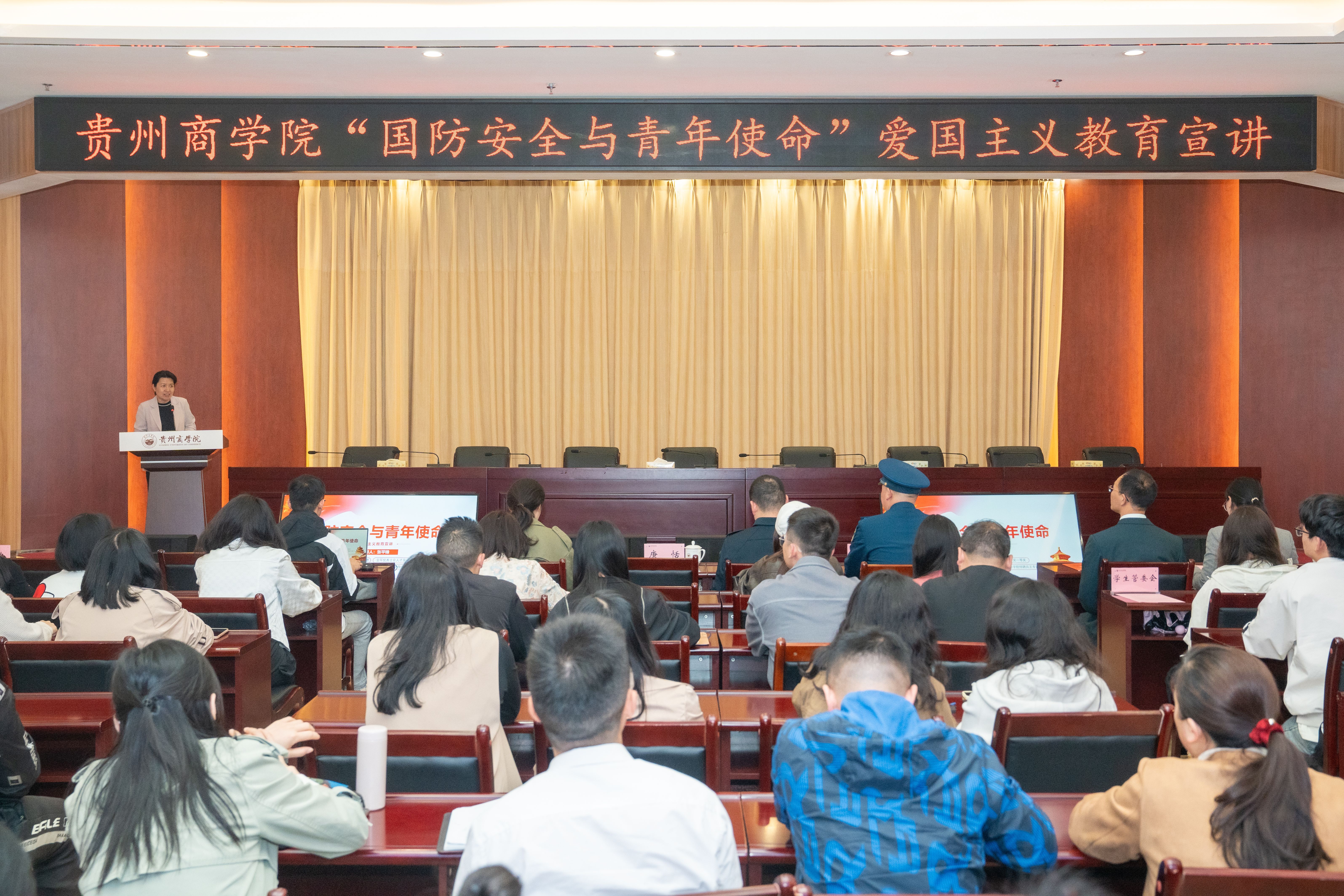 为鼓励先进、树立典型,在全校范围内营造良好的学风、班风和校风,体现学校长期以来对学生的“关心、关爱、关注”,5月20日学校于图书馆四楼报告厅举行2024-2025学年优秀学生表彰大会。党委副书记张勇,党委委员、副校长苟先茂出席会议并为获奖学生颁奖。大会对过去一年在学业、实践、集体建设中表现突出的个人和班级进行了表彰。受表彰的有24名国家奖学金获得者、27名省级三好学生、9名省级优秀学生干部和4个省级先进班集体以及国防教育优秀团队。会上,张勇副书记代表学校向获奖者致以热烈祝贺,并向辛勤培育学生的教师和支持学生成长的家人表达了诚挚感谢。张勇指出,获奖同学以“笔为剑”深耕学业、以“责任为舟”服务集体,展现了贵商学子奋发向上的青春力量。愿每一位商院人都能以榜样为镜,见贤思齐;愿每一间教室都书声琅琅,每一间宿舍都学风融融,让贵州商学院的学风更浓、班风更正、校风更清!张勇强调,表彰不仅是对奋斗者的嘉奖,更是对全体师生的激励,大家要以榜样为引领,营造“学榜样、争先进、创一流”的校园风尚。要始终坚守“以人为本、以学生为中心”的教育理念,致力于为每一位同学创造人生出彩的机会,老师们要继续肩负起立德树人的神圣使命,成为学生成长道路上的引路人;各部门要协同联动,以优良学风、班风建设为引擎,全力推动学校高质量发展,精心培育更多适应社会发展需求的新型商科人才。张勇希望,受表彰的同学以“求真笃信”为锚,筑牢立身之本,以诚信为尺、品德为镜,在学业与生活中践行“内不欺己,外不欺人”,涵养高尚品格;以“知行并重”为帆,勇立时代潮头,将“读万卷书”与“行万里路”结合,在实践中锤炼本领,以真才实学回应“强国一代”的使命;以“豁达润心”为种,厚植进取沃土,直面人生起伏,从容应对人生的失落与坎坷,在挫折中成长,在坚持中超越。各有关职能部门负责人,各学院党总支副书记,国家奖学金、省级“三好学生”、省级优秀学生干部、省级先进班集体、学校参加贵州省第三届国防教育活动周优秀团队获得者,以及全体师生代表近300人参加表彰大会。 一审:尹海波二审:孙 婷三审:唐 恬