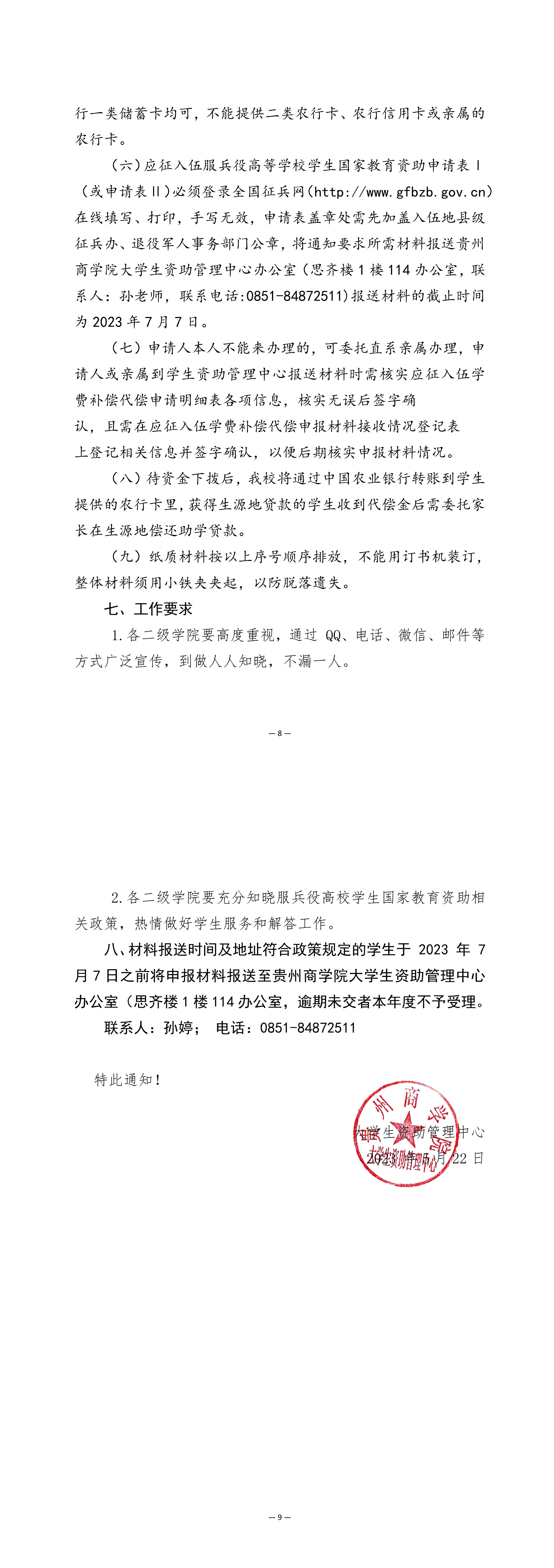 关于做好 2023 年服兵役高校学生国家教育资助的通知_黔商院资助发〔2023〕6号.pdf