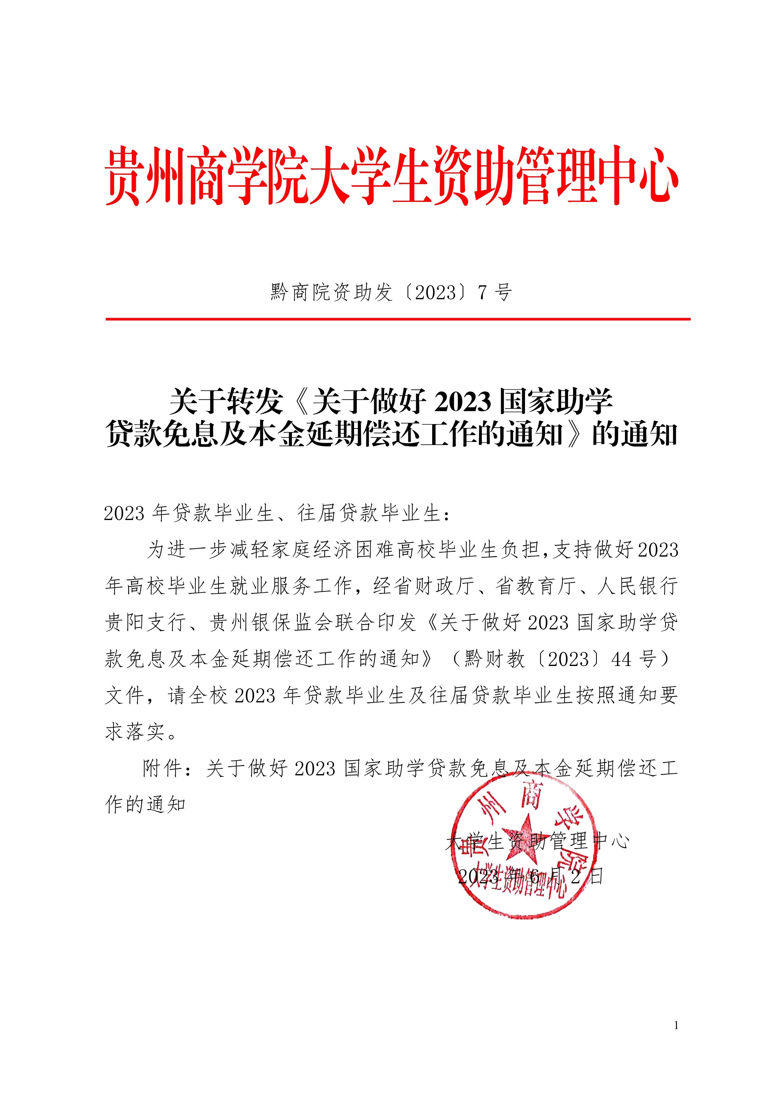 关于转发《关于做好2023年国家助学贷款免息及本金延期偿还工作的通知》的通知.pdf