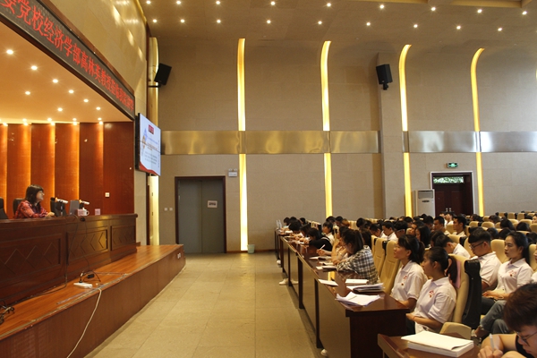 2019年6月11日下午14:00,由党委宣传部、科研处主办,院团委承办的第十期“贵商大讲堂”在思齐楼学术报告厅举行。中共贵州省委党校经济学教研部主任、经济学教授高林英老师应邀为我院师生作“习近平新时代中国特色社会主义经济思想”专题学术讲座,讲座由院团委副书记吴晶鑫主持,我院200余名师生代表聆听了本次讲座。