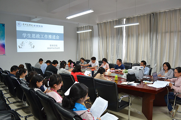 为进一步做好学生思政工作,6月11日下午13:30,管理学院在尚信楼A412会议室召开学生思政工作推进会,管理学院主要党政负责人、全体专兼职辅导员参加会议,会议由管理学院党总支副书记赵翔主持,贵州商学院副院长、管理学院院长文大强出席会议。