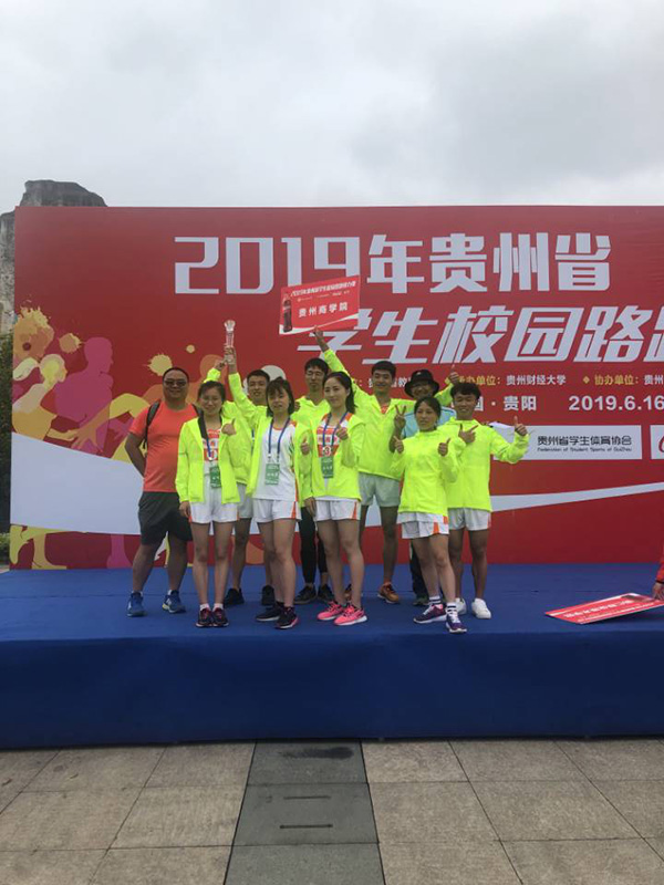 2019年贵州省学生校园路跑接力赛于6月16日在贵州财经大学(花溪大学城)举行。体育教学部李官强副主任担任领队,唐云鹏老师担任教练员带领8名运动员组成代表队参加了本次大学生甲组(本科非体育专业组)项目的比赛,并在17支参赛队伍中脱颖而出,取得团体第四名。