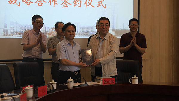 方仕平代表学院接收了《四部丛刊》,罗兵与苏雨恒代表校社双方签订了战略合作协议。