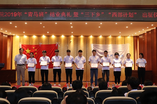 2019年7月1日,我院2019年“青马班”结业典礼暨暑期“三下乡”“西部计划”出征仪式在思齐楼报告厅举行。学院党委委员、副院长张勇出席仪式。宣传部、学工部、马克思主义学院负责人及各二级学院党总支负责人与来自青马班、西部计划志愿者以及今年参加暑期三下乡的实践队员共计200余人共同参加了此次活动。