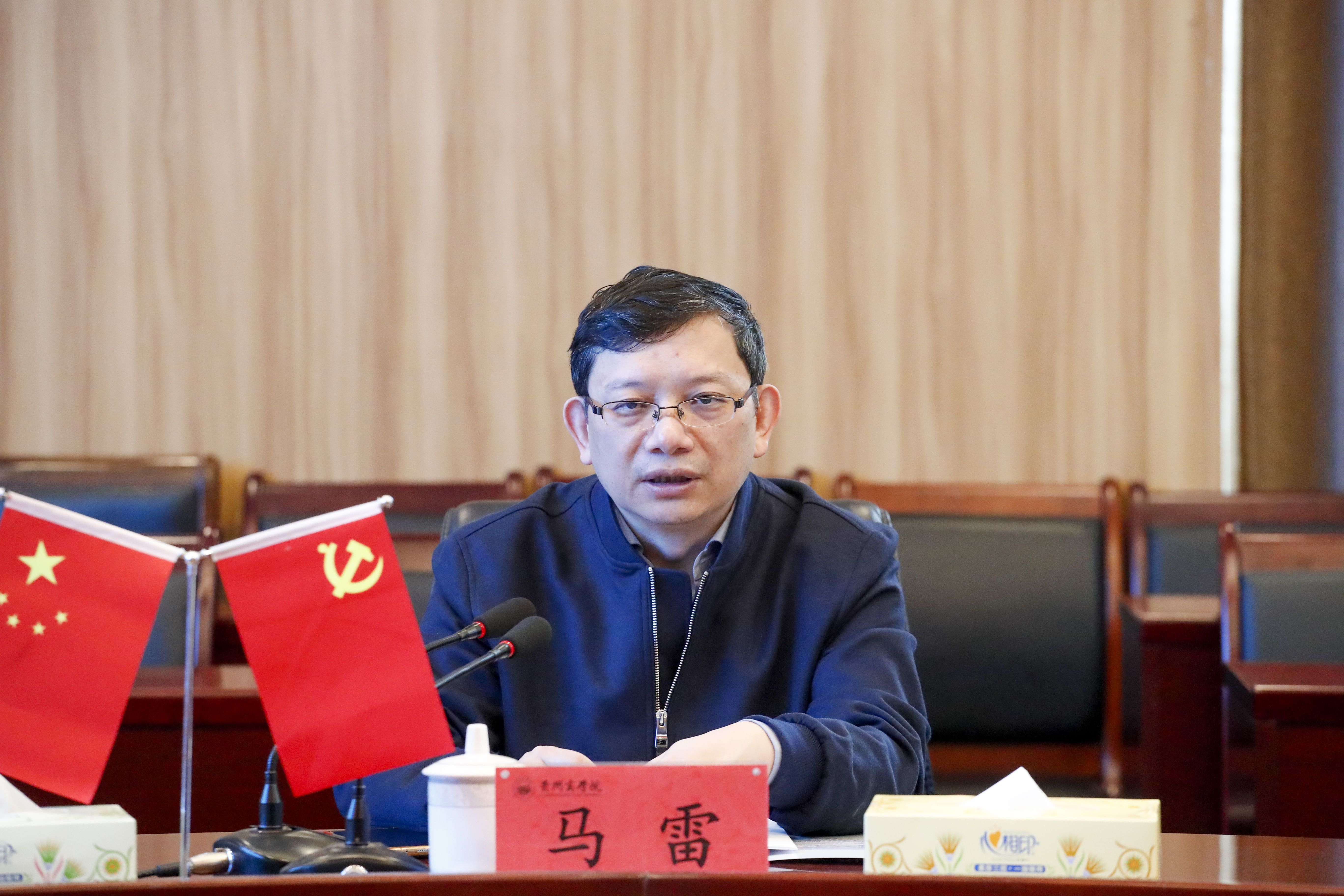 马雷厅长深情回顾了贵州省商务厅与贵州商学院的历史渊源,强调在贵州商贸流通领域和我省大力推动内陆开放型经济试验区建设提档升级过程中,学校在人才支撑保障方面起到不可或缺的作用。他认为此次到贵州商学院调研具有重大意义。一是明确合作定位:促进贵州省商务厅与贵州商学院全方位长期深入合作。二是确定合作方向:促进商业领域的基层人员素质提升,促进现有电商领域快速发展,通过制度和技术创新,推动贵州电商产业提质升级,促进双方人员交流,特别是希望学校的高层次人才能进入课题组,接触贵州省商务领域实际活动,结出扎实的研究成果。三是确定合作模式:要确定合作模式和定期联系沟通机制,资源互补,抢抓贯彻落实新国发2号文件的重大机遇,尽快出台一批合作项目清单,在打造贵州省内陆开放型经济新高地上快速发力,对合作方向进行引领,打造和汇聚更多优秀的专家学者,提高研究层次与质量,在融入国内大循环和国际国内“双循环”新发展格局下推动贵州商务工作高质量发展。