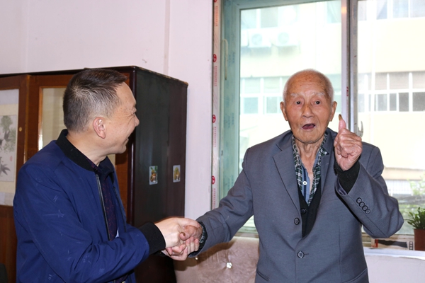 在建国70周年即将到来之际,2019年7月8日下午,离退休处党支部书记杨志军及相关工作人员,带着组织的关怀和温暖看望慰问建国初期参加革命工作退休老干部赵云来同志,转达了省委老干部局、学院党委对老同志的真切关怀和诚挚慰问,并送上慰问金。