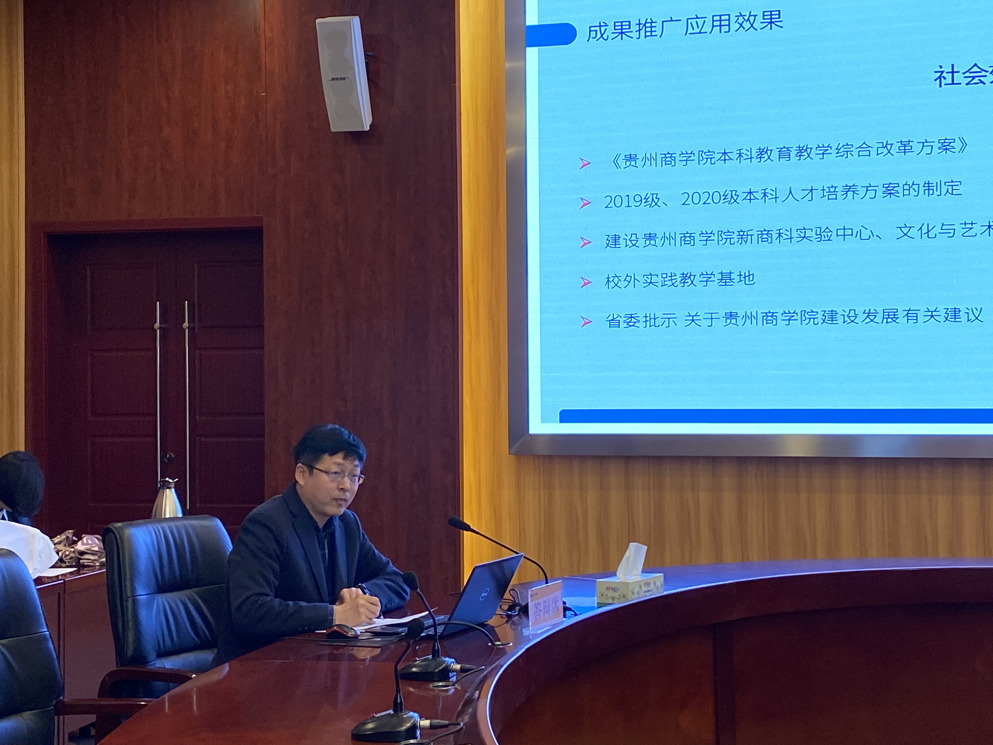 2022年3月27日,贵州商学院高等教育省级教学成果奖(以下简称“成果奖评选”)评选现场答辩环节在学校湖滨会议中心第一会议室举行,成果奖评选分为线上评审和现场答辩评审两个环节进行。先经教师自愿申报、教学院部及部门初审,教务处共计收到有效申报书28份。根据校外专家线上评审结果,有15名申报负责人进入现场答辩环节。