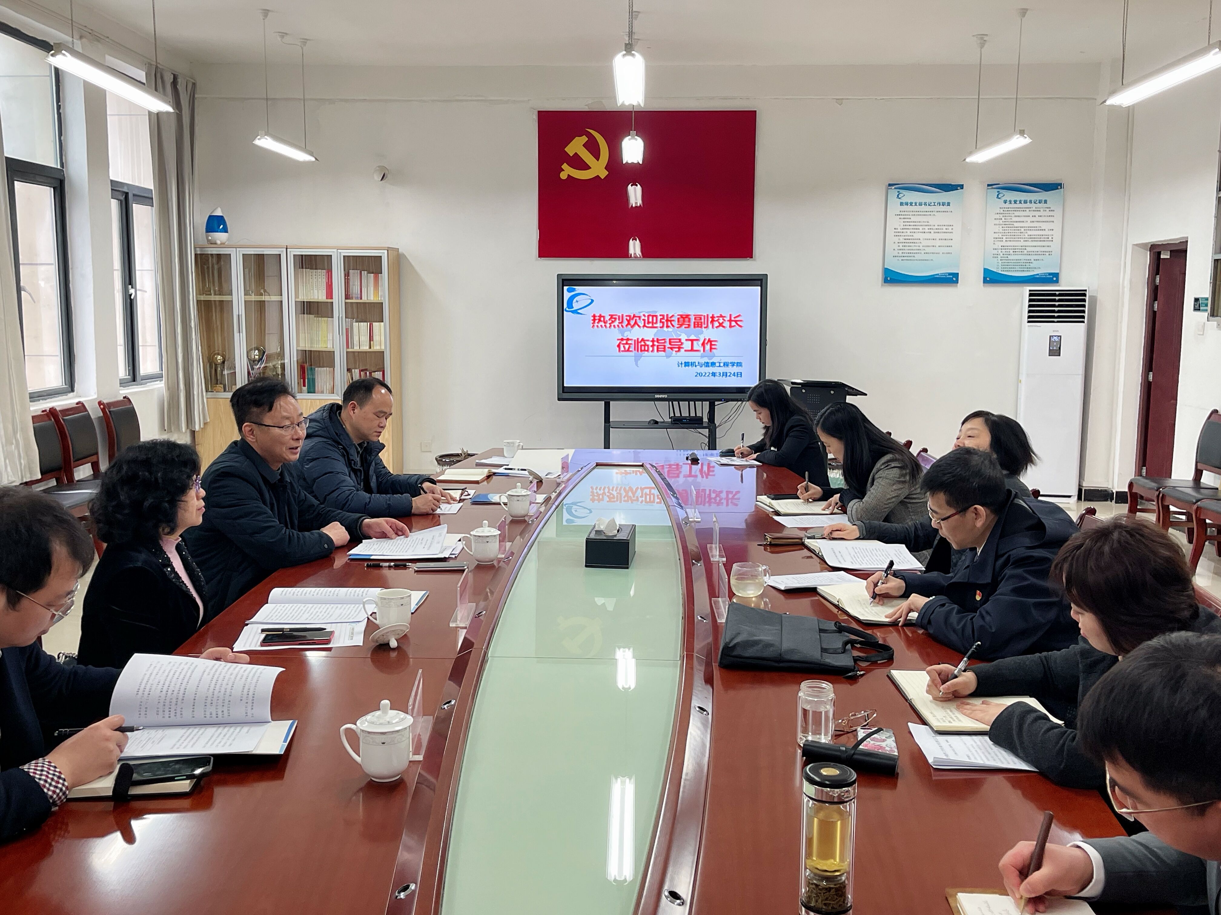3月24日上午,校党委委员、副校长张勇带领教务处负责人、教育评估中心工作人员一行5人到计算机与信息工程学院看课听课、座谈调研。