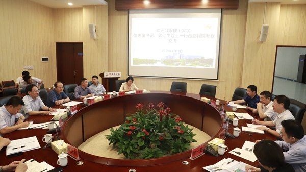 2019年7月11日上午,武汉理工大学党委书记信思金率中国工程院院士姜德生一行5人来我院考察交流。在学院会议中心,院党委书记方仕平、院长罗兵、副院长黄营、文大强、院长助理王世杰与武汉理工大学领导和专家进行了座谈交流,党办、院办、科研处负责同志参加。