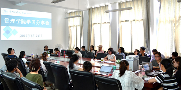 8月21日,管理学院在尚信楼A412会议室开展了教师学习分享活动,该活动是教学管理及教师能力提升培训内容之一,活动由党总支书记庞郁华主持,管理学院全体教师参加。