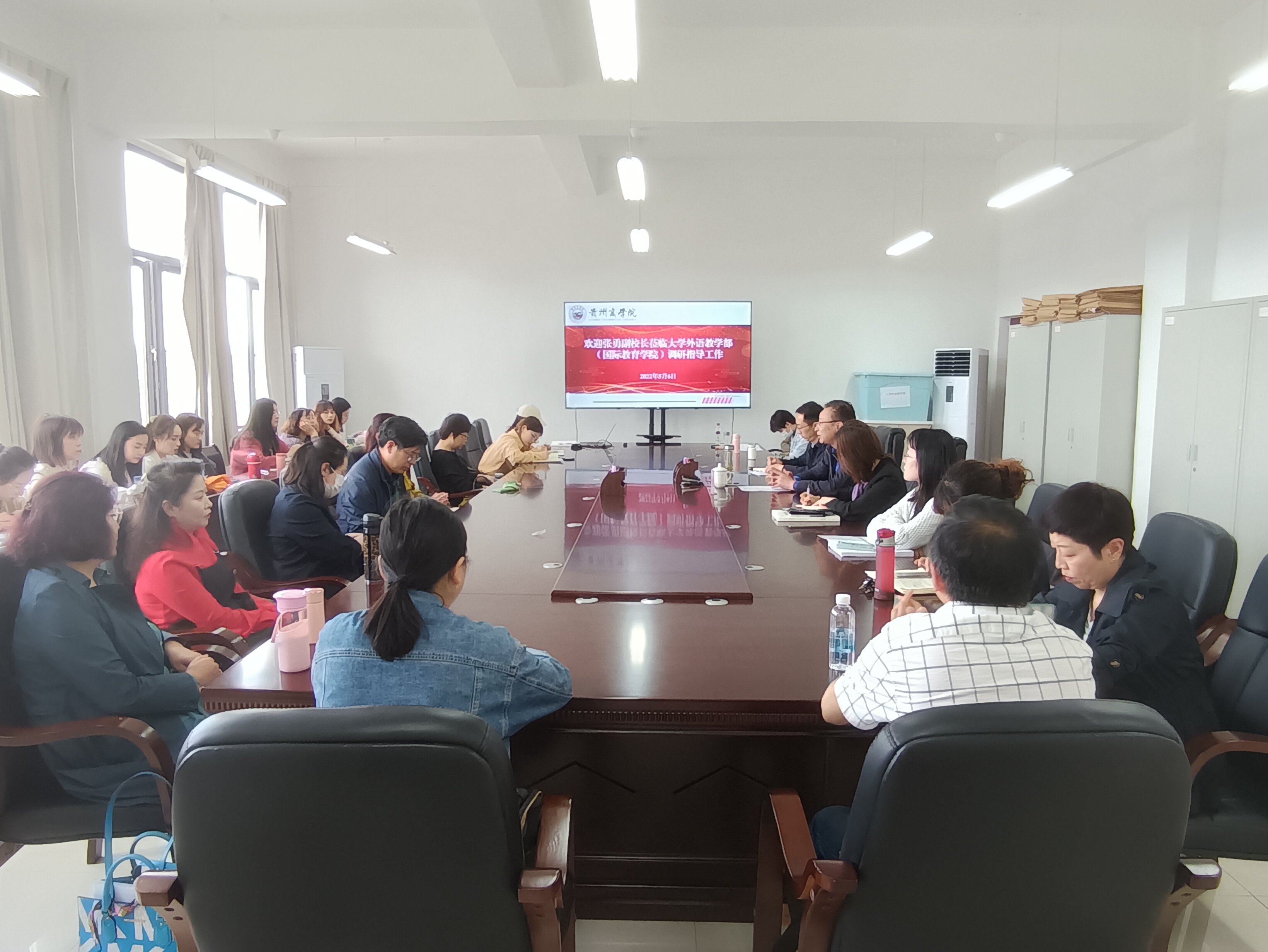 2022年5月6日下午,学校党委委员、副校长张勇出席大学外语教学部(国际教育学院)例会并指导工作,例会由党总支书记严勇主持,大外部(国教院)全体教职工参加。