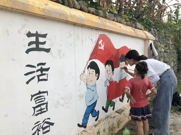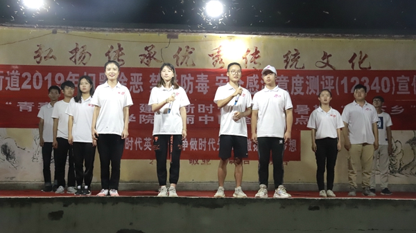 实践期间,师生们瞻仰了当地红军烈士墓,深切缅怀革命先烈的丰功伟绩,激活青年身上的红色基因,让红色江山永不变色;同时还在社区村委会办公楼国旗台下举行了升旗仪式,将爱国主义教育贯穿整个活动始终。五天的实践,师生们头顶烈日走村入户,了解社情民意、乡村产业发展、调研乡村振兴实施路径、宣传党的惠农政策、讲述时代楷模故事、讴歌祖国70年伟大成就、关爱留守儿童、慰问空巢老人、帮助社区绘制红色文化墙。清晨,队员们迎着六点初升的太阳,登上白云山青风岭,挑战自我,磨炼意志。夜晚,通过夜校大讲堂,队员们为村民讲青年习近平在梁家河的知青故事,播放爱国主义影片、介绍农产品营销方法和乡村产业发展成功案例。离行前夕,队员们通过小合唱、小品、相声、朗诵、快板等形式与社区村民一起举办联欢晚会,在稻花飘香的田野里歌颂新时代,唱响主旋律。