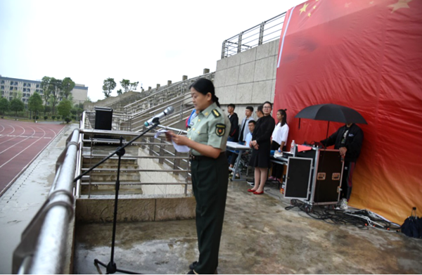 大会在庄严的国歌声中拉开了帷幕。学工部(武装部)负责人宣读了2019级新生军训工作方案,明确了军训组织架构及军训训练科目与训练要求。2019级参训学生代表及指导员代表分别发言。