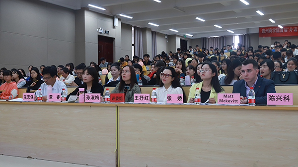 启动仪式上大外部(国教院)大学外语教研室负责人张娇老师介绍了我院首届“外语活动月”的活动目的及活动形式,拉开了活动序幕。12名经过层层选拔的选手,精心准备、灵活应战,通过定题演讲、即兴演讲、现场问答三个环节的激烈竞争,经济学院的汪雨捷、管理学院的姚元昊的两名同学斩获了演讲比赛特等奖,将代表贵州商学院参加贵州省决赛。外籍教师Matt Mckevitt和大外部(国教院)龙安保博士对此次演讲大赛做了总结发言。