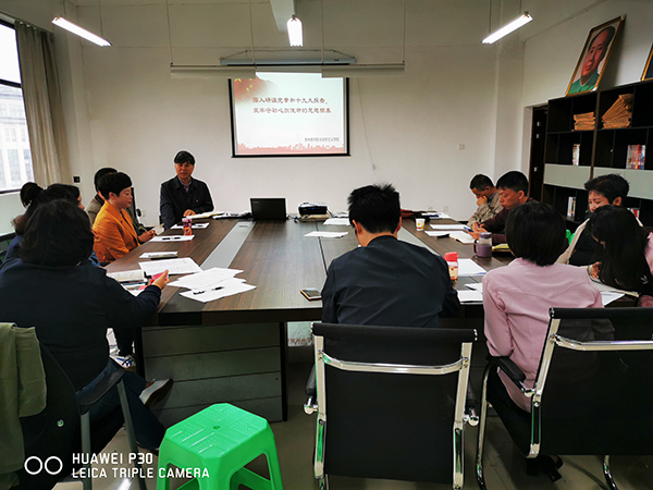 2019年10月11日,马克思主义学院党总支组织教师党员学习党章及十九大报告,全体教师党员重温入党誓词。