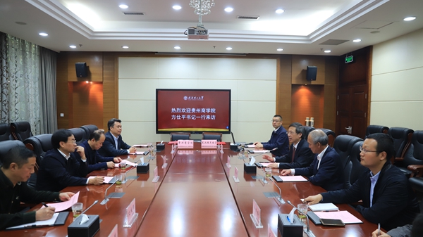 罗兵、康灿华代表双方签署《武汉理工大学贵州商学院对口支持与合作协议》、《武汉理工大学与贵州商学院共建“贵州省公共安全与智慧发展研究中心”合作协议》。双方将本着“实事求是、循序渐进、突出特色、互利共赢”的原则,在队伍建设、人才培养、学科专业建设、科学研究、资源共享等领域开展对口支持与合作工作。并在“资源共享、互惠双赢、共同发展”的原则之上,建立长期、紧密的合作关系,在机构设立与师资培训、本科专业申报与建设、省级人文社科基地与实验室建设等方面加强合作,共建“贵州省公共安全与智慧发展研究中心”。