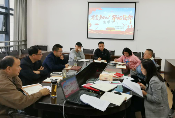 2019年10月21日,直属第八党支部在思齐楼313会议进行“不忘初心、牢记使命”主题教育集中学习研讨,会议由支部书记陈小萍主持,学院纪委书记田慧林和支部全体党员全程参加。