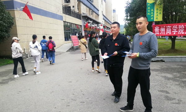 此次志愿者服务活动分为两部分进行,一是开展现场调研,活动点共设四个咨询台,现场接受同学们在校园吃、住、行、安全等方面反映的问题,并逐一记录、梳理,确定整改方案;二是发放专题宣传资料,在冬季来临之前对同学们进行食品安全、用电安全、消防安全、防盗防骗四个方面的教育,现场发放《贵州商学院安全手册》1000余份。