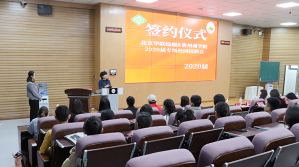 11月1日下午,学院与北京华联举行毕业生集体签约仪式。学生处(招就处)负责人田歆对北京华联成立招聘专项组到我院开展2020届本科毕业生招聘工作表示感谢。她表示,此次北京华联集团以发展储备干部力量为目标,来我院开展毕业生专场招聘,是校企双方深度合作的重要体现,既能促进学院与企业双方的优势互补,也能更好地实现高等教育造福社会的功能,对于双方都有着积极的意义。她希望此次签约的毕业生到北京华联后,能脚踏实地工作;对待生活和工作,要心存感激,要学会创造生活和工作的乐趣,并用自己的快乐去点燃别人的快乐,最后祝同学们前程似锦!