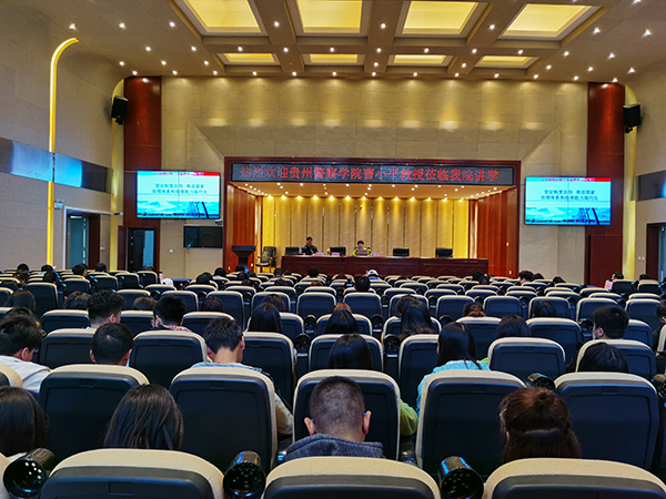 2019年11月15日上午,由党委宣传部、科研处主办,马克思主义学院承办的第十二期“贵商大讲堂”在思齐楼一楼报告举行。讲座主题是:坚定制度自信 推进国家治理体系和治理能力现代化----深入学习领会党的十九届四中全会精神。讲座由贵州省委组织部干部培训学院、省司法厅、遵义市公安局聘请的理论宣讲专家、贵州警察学院组织处处长、贵州警察学院学术委员会委员曹小平教授担任主讲嘉宾。马克思主义学院党总支书记贺笃照主持讲座,马院全体教师及各二级学院师生代表聆听了此次讲座。