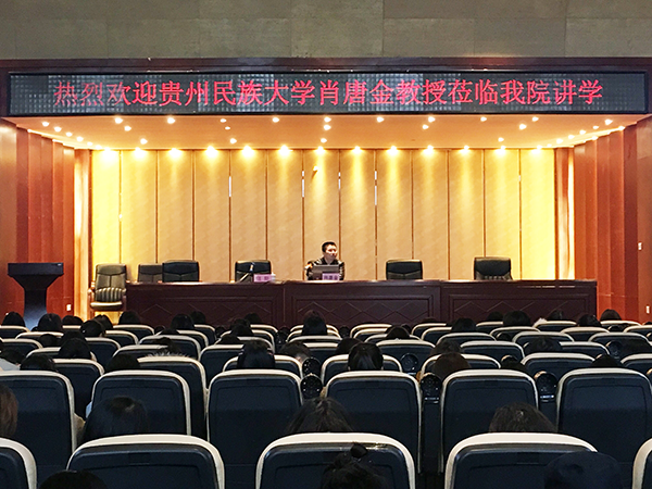 2019年11月21日,由学院党委宣传部、科研处、大学外语教学部(国院教育学院)共同举办的第十八期“贵商大讲堂”在思齐楼一楼报告厅举行。贵州民族大学肖唐金教授、博士受邀莅临我院作了题为“英语词汇与文化信息—兼谈商务英语词汇的文化负载”的专题讲座。大学外语教学部(国院教育学院)副主任汪阳教授主持讲座,全院近300名师生代表共同聆听了讲座。
