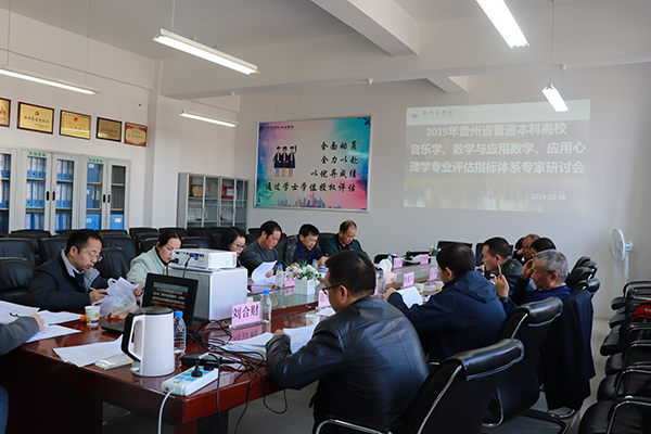 根据贵州省教育厅进一步推进我省普通本科高校专业评估工作的安排,我院作为贵州省普通高等学校本科专业评估工作专家指导委员会秘书长单位,在2019年12月16日下午组织召开了2019年贵州省普通本科高校音乐学、数学与应用数学、应用心理学专业评估指标体系专家研讨会。会议邀请到兴义民族师范学院副院长彭光明、贵州民族大学音乐舞蹈学院院长唐德松、贵州财经大学数统学院院长焦建军、贵州师范学院教育科学学院院长刘红等来自贵州省十余所本科高校的40位专家参加会议。