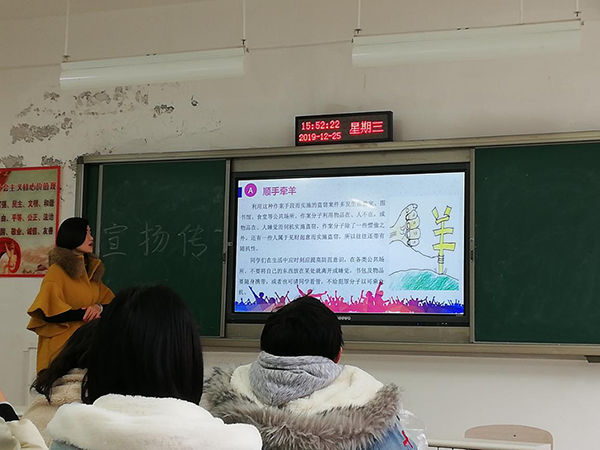 为了提高大学生对安全的认识,减少自身安全风险,文化与艺术传媒学院于2019年12月15日下午3点30分在尚文楼B201教室开展了《大学生校园安全教育》讲座。此次讲座由马克思主义学院陈雯老师主讲,文化与艺术传媒学院在校班级主要班干参加。