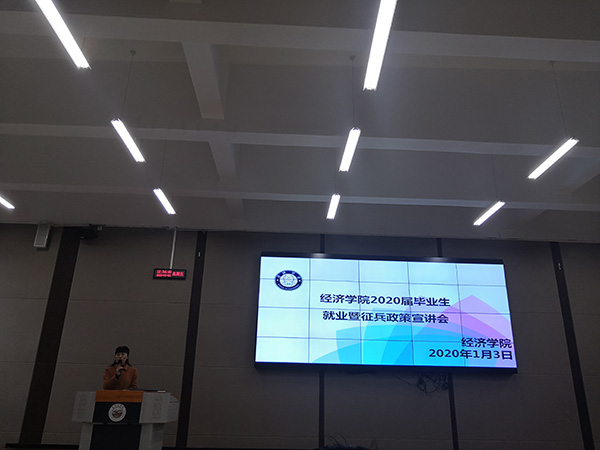 为推进毕业实习的顺利开展,确保毕业论文质量,强化安全管理,宣传征兵政策,做好毕业生离校前相关工作,1月3日下午,经济学院于尚信楼阶梯教室1J301召开2020届毕业生就业暨征兵政策宣讲会和2020届毕业生毕业实习动员暨毕业实习安全教育会议。经济学院党总支书记唐雪梅、党总支副书记付茂业、副院长蔺琛、副院长王黔京、16级全体辅导员、经济学院全体毕业实习指导老师及2020届国际商务专业全体毕业生参加会议。