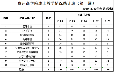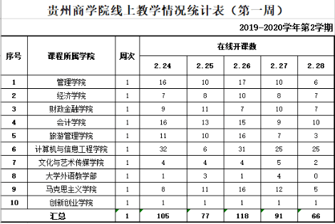 根据《教育部应对新型冠状病毒感染肺炎疫情工作领导小组办公室关于在疫情防控期间做好普通高等学校在线教学组织与管理工作的指导意见》(教高厅[2020]2号)、《贵州商学院关于2019-2020学年第二学期线上教学工作安排的通知》要求,我院2月24日开始实施线上教学活动,保证疫情防控期间教学进度和教学质量,实现“停课不停教、停课不停学”,保证在线学习与线下课堂教学质量实质等效,基本达到教学目标。