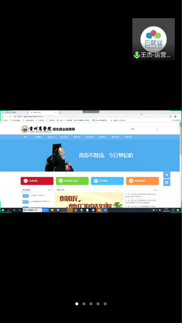 根据《教育部关于应对新冠肺炎疫情做好2020届全国普通高等学校毕业生就业创业工作的通知》(教学【2020】2号文件)的相关精神,为切实解决毕业生就业过程中遇到的问题,加快推进学院就业工作信息化建设,学生处(招就处)积极开展云就业平台网签服务系统。2020年4月23日上午10:00,学生处(招就处)邀请到云研公司技术人员通过“腾讯会议”对我院就业相关工作人员开展了网上签约系统线上培训。