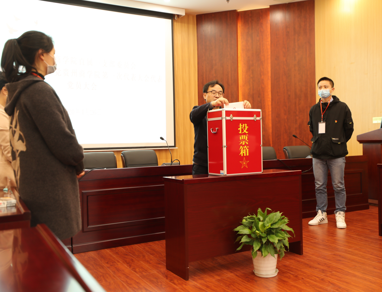 全体与会党员举手表决通过了《直属一支部出席中国共产党贵州商学院第一次代表大会代表选举办法》和直属一支部出席学院第一次党代会代表候选名单、总监票人、监票人及计票工作人员名单。选举开始,由监票人、计票人清点人数,并将选票分别发送至各位党员手中。全体党员严格按照选举工作要求,进行充分考虑,反复酝酿,以无记名投票方式进行了投票。
