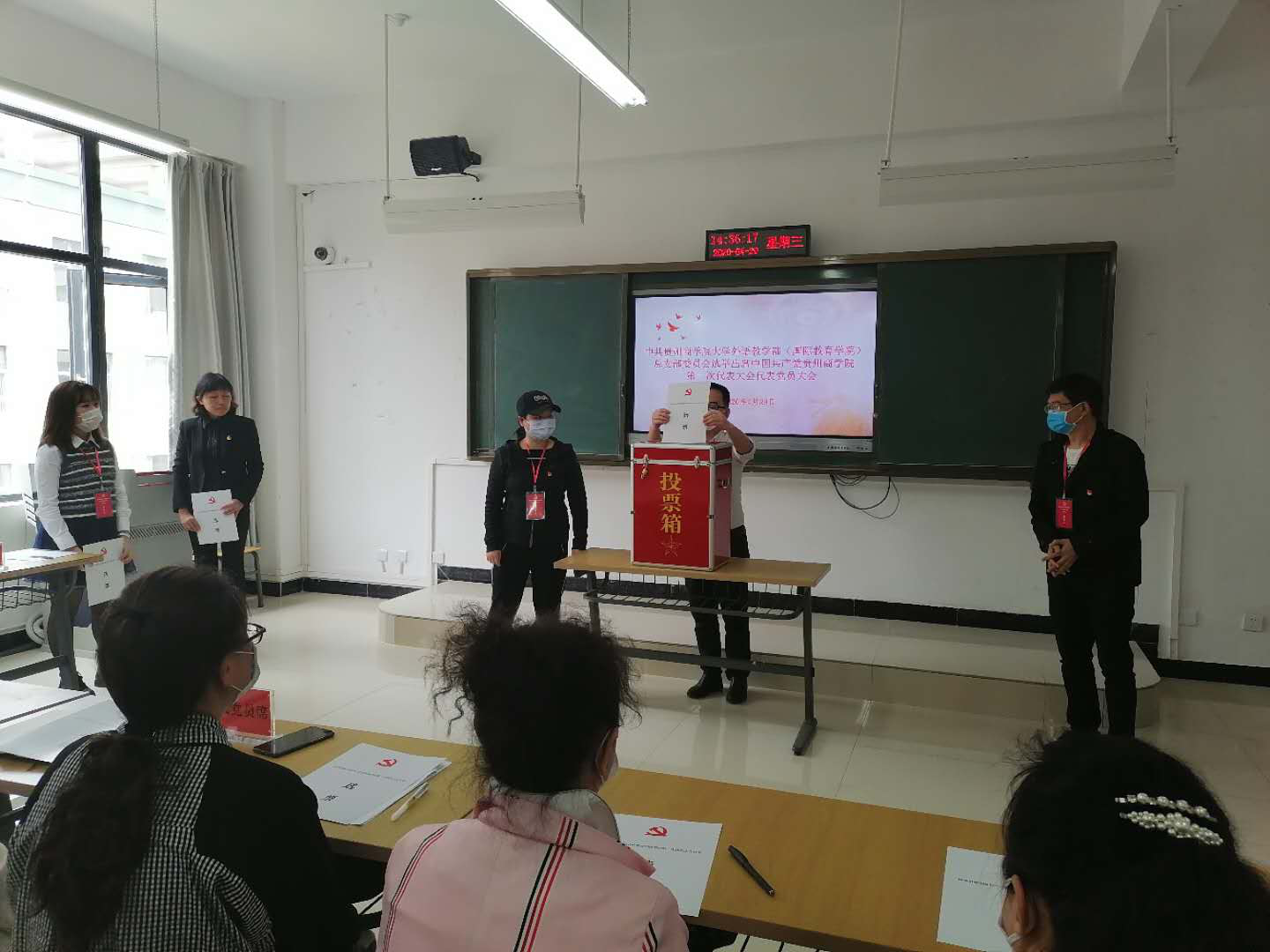 4月29日下午两点,大学外语教学部(国际教育学院)党总支在尚智楼A区407召开全体党员大会,选举产生了大学外语教学部(国际教育学院)总支部委员会出席中国共产党贵州商学院第一次代表大会代表人选。大会由大学外语教学部(国际教育学院)党总支书记薛莲主持。