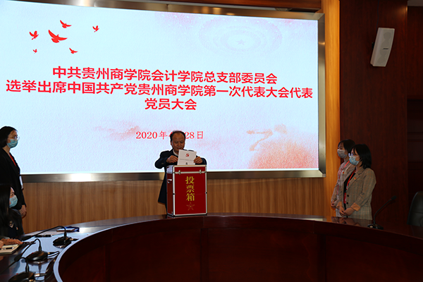 会议共五项议程,一是由主持人介绍代表候选人预备人选产生过程及基本情况;二是由工作人员宣读《中共贵州商学院会计学院总支部委员会出席中国共产党贵州商学院第一次代表大会代表选举办法》(草案),举手表决通过该《办法》;三是酝酿通过代表候选人名单,通报在广泛征求所有党员意见的基础上报学院党委批复的11名候选人名单;四是通过现场举手表决总监票人、监票人名单,计票人名单。五是选举会计学院党总支出席中国共产党贵州商学院第一次代表大会代表。选举过程中,严格按照选举工作要求,每一位党员经过慎重考虑、仔细填写,以无记名方式进行了投票。本着严肃、认真负责的态度,仔细填写选票,确保本次选举的有效性。