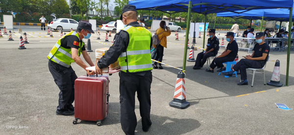 5月21日—23日,学院迎来了8000多名非毕业生返校复课。在“外防输入、内防反弹”的关键节点,贵商的安保队员们坚决克服麻痹思想、厌战情绪、侥幸心理、松劲心态,在保卫处的精心组织下全力配合学生处、后勤处、各二级学院在学院正大门、西大门筑起“安全防线第一关”,认真开展扫码、测温工作。并在履职期间尽最大努力帮助有困难的学生搬运行李,为学生送上了一份来自安保队员的爱心。三天时间里,师生们的镜头捕捉到的暖心画面只是众多感人场景的一部分,贵商安保决心再接再厉,在下一阶段持续做好各项安保服务工作,为创建平安贵商、和谐贵商贡献自己的一份力量。