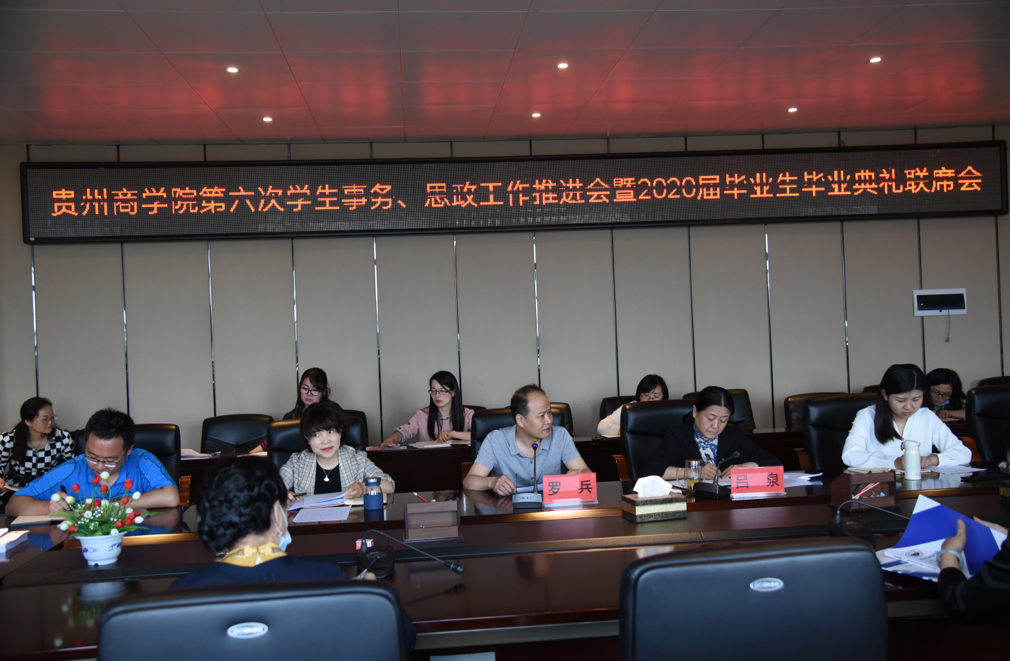 6月9日上午10点,我院在思齐楼514会议室召开了第六次学生事务、思政工作推进会暨2020届毕业生毕业典礼联席会。学院院长罗兵,党委副书记吕泉出席会议,院办、宣传部、教务处、后勤处、保卫处、团委负责人,各二级学院党总支书记,学生处(招就处)相关工作人员参加会议。会议由学生处(招就处)负责人田歆主持。