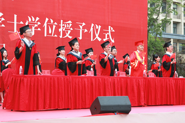 院领导为毕业生代表、优秀毕业生代表、优秀论文获奖者、优秀毕业生党员代表颁发毕业证书、获奖证书。