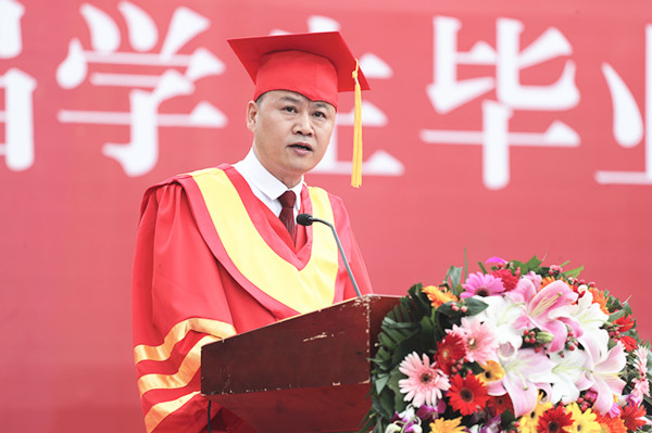 罗兵在致辞中代表学院党委和行政向2020届全体毕业生表示最衷心的祝贺!向为学生成长成才倾注爱心、智慧和汗水的各位老师致以最真诚的感谢!罗兵表示,这场不期而遇的新冠病毒疫情,扰乱了我们美好的生活和很多既定的部署,但难能可贵的是,同学们全力以赴参与这场伟大而艰苦的疫情控制,所表现出的激情和坚守,不但锤炼了同学们的毅力和品质,而且展现了同学们顾大局和无私奉献的精神。当前,同学们正处在世界百年未有之大变局和中华民族伟大复兴的关键时期,既面临前所未有的机遇,也面对着严峻的考验和挑战,同时也面临着大好的创新创业发展机遇。这是一个眷顾好学者的时代;这是一个相信梦想、追逐梦想、实现梦想的时代;这是一个需要勇于担当的时代;希望同学们牢记“艰苦奋斗,自力更生,勇于担当,敢于创新”的贵商精神和“尚信塑品,致用立身”的校训,在未来逐梦的岁月中,不断传承和光大这种精神,厚植家国情怀,肩负起时代赋予大家的历史使命,为实现中华民族伟大复兴的梦想而努力奋斗。