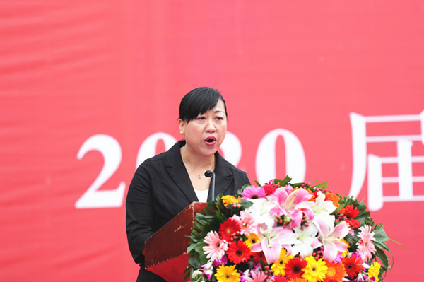 教师代表霭菲在发言中叮嘱同学们要有家国情怀、永远不放弃自己那颗闪光的心、做自己人生的“工匠”,希望同学们在未来的岁月都能拥有精彩人生,并且常回母校看看。