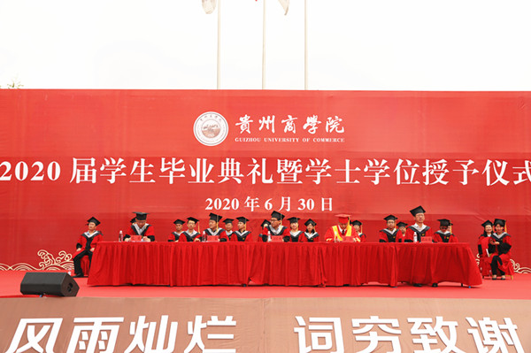 毕业生代表黄麒瑞表示,将时刻铭记“尚信塑品,致用立身”的校训和贵商精神,不畏艰险,追求卓越,用热血铸就贵商之魂,用肩膀托起新的乾坤,在未来的浪潮中展现贵商人的风采。