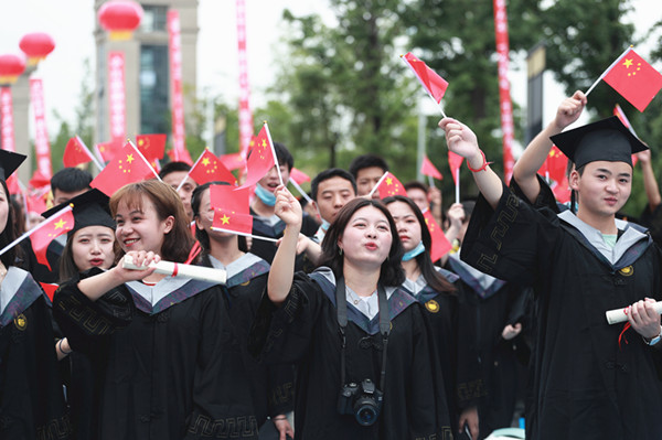 因疫情防控工作需要,毕业生们没能全体重返母校,虽有遗憾,但毕业季的所有美好与感动不减分!无法亲临的同学们,通过网络实时直播参与了这场特别的毕业典礼,在弹幕和直播间里说出了心里的话,一如你我就在这个特殊的现场,一抬头就可以看到商云广场上迎风飘扬的五星红旗和碧蓝深邃的天空!