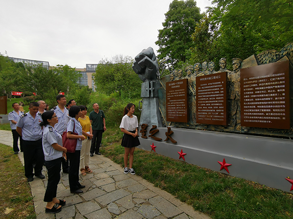 活动在奏唱国歌中开始,两个支部党员面对党旗庄严宣誓,重温入党誓词,谨记入党初心,恪守对党的承诺。宣誓结束后,党员们参观了“红色文化贵州印记”环湖步道红色文化教育基地。跟随红军在贵州的足迹,回顾了近百年党的历史,从南湖红船烟雨到井冈山星星之火,从西柏坡进京赶考到天安门庄严宣告,从在南海边画了个圈到走向世界的一带一路,党带领中国人民,艰苦奋斗,赢得社会主义建设的一个又一个伟大成就。