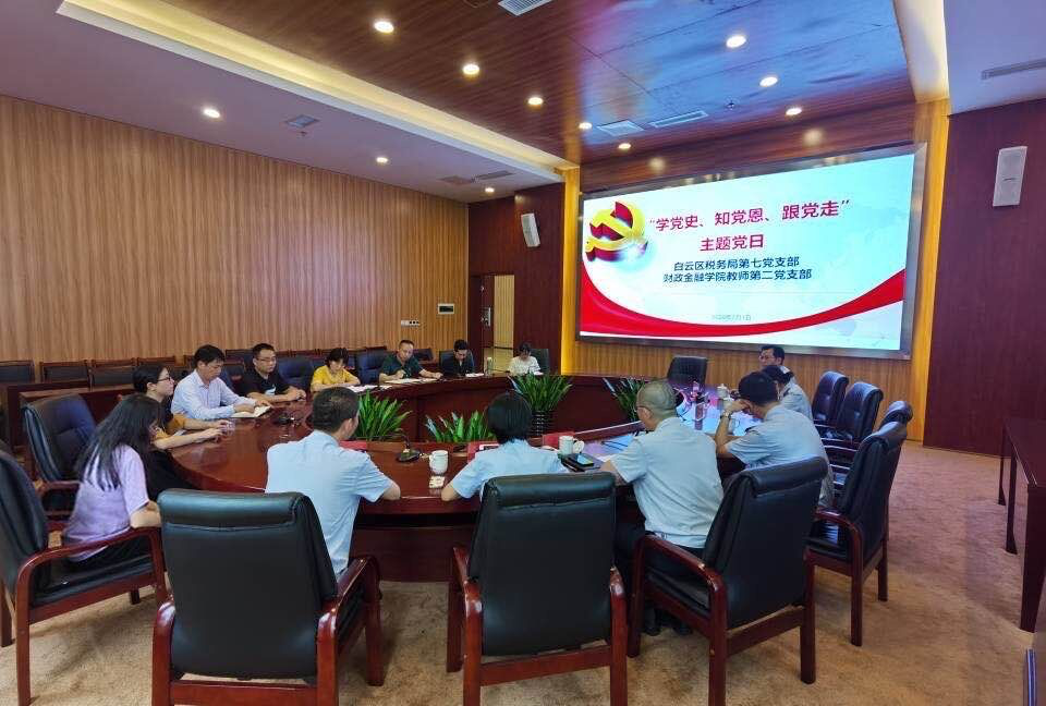 2020年7月1日下午4:00,财政金融学院教师第二党支部、白云区税务局第七党支部开展“学党史、知党恩、跟党走”主题党日活动,庆祝中国共产党成立九十九周年。