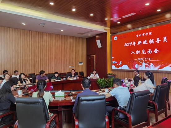 2020年7月15日星期三早上9:30,2019年新进专职辅导员入职迎新会在会议中心第一会议室召开,学工部负责人田歆、杨通宇,各二级学院党政负责人、新进专职辅导员及相关工作人员参加了本次会议,田歆主持。