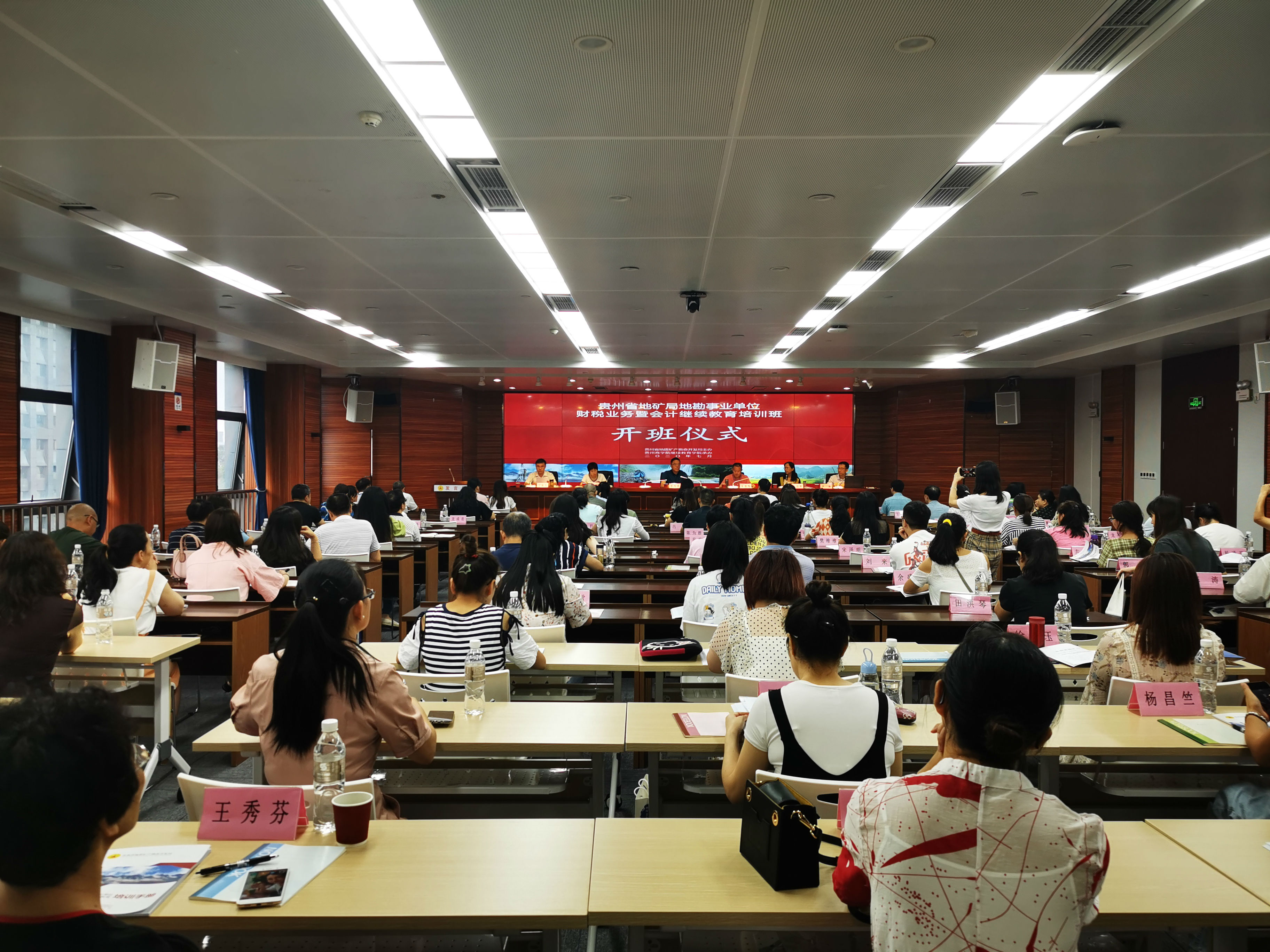 7月22日,由贵州省地矿局主办、贵州商学院继续教育学院承办的“贵州省地矿局地勘事业单位财税业务暨会计继续教育培训班”在贵阳开幕。省地矿局副局长周万强,省地矿局副总会计师、规划发展处处长朱堂华,省地矿局财务资产处处长王秋生,我院继续教育学院党总支书记严勇及有关专家老师出席开班仪式,开班仪式由王秋生处长主持。来自省地矿系统20家地勘事业单位的财务负责人、主要从事事业单位会计业务的财务人员,从事纪检审计工作的会计专业技术人员,以及财务资产处全体人员共104人参加培训。