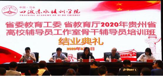 经过为期三天的学习,8月3日,2020年贵州省高校辅导员工作室骨干辅导员培训班结束了所有行程,顺利结业,并在习水四渡赤水培训学院星火楼举行结业典礼。贵州省教育厅社政处处长王晓红,贵州省教育厅社政处四级调研员朱伟,贵州财经大学学工部部长周晶,贵州省教育厅社政处干部肖亚坤,习水四渡赤水培训学院副院长李宛儒出席典礼。