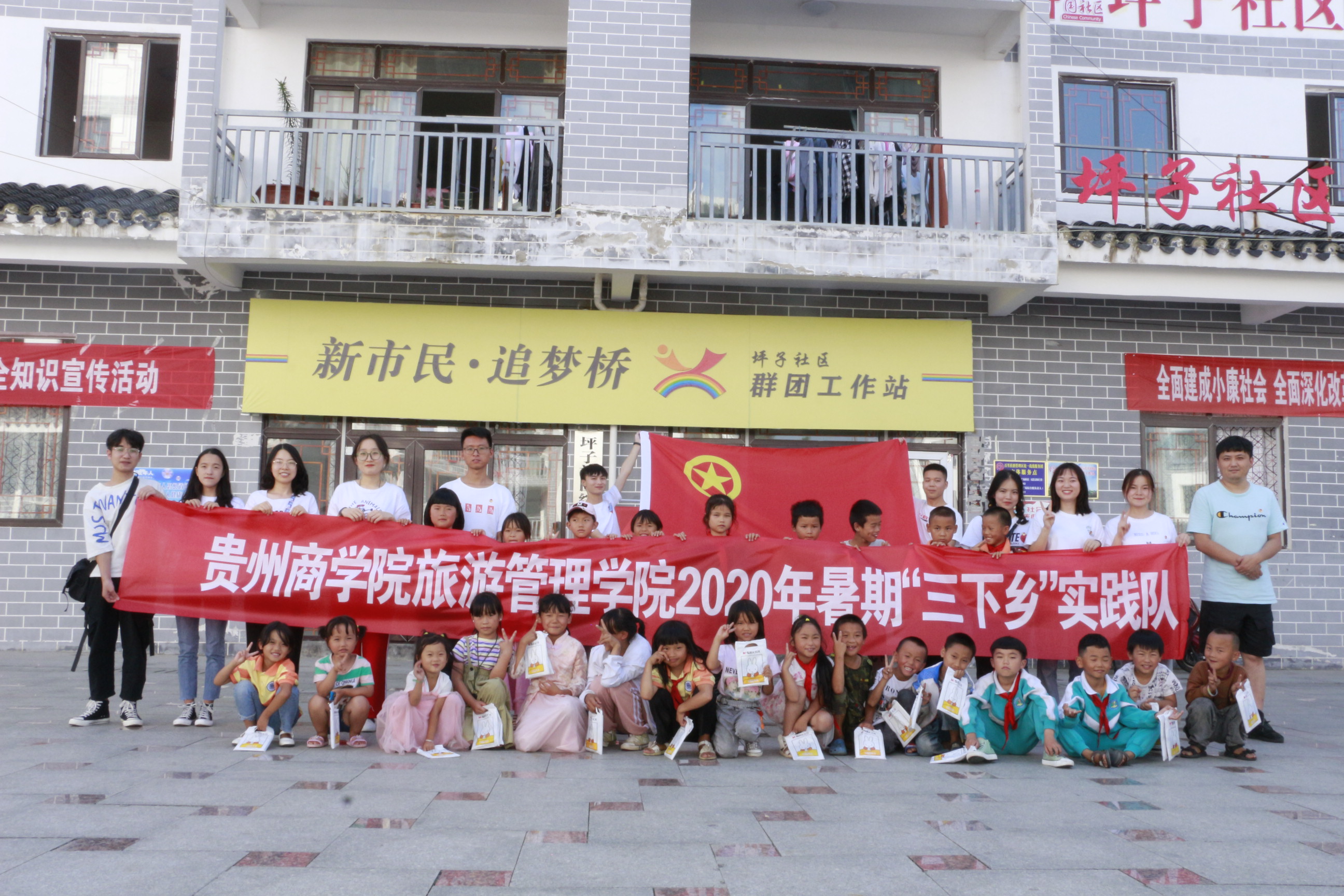 为了引领广大青年学生深入学习贯彻习近平新时代中国特色社会主义思想,特别是习近平总书记关于青年工作的重要思想,扎根中国大地,了解国情民情,让广大青年大学生广泛接触社会,了解基层,服务基层,发挥他们的专业优势,深入乡村、社区、企业,开展专题调研。2020年8月27日,旅游管理学院暑期“三下乡”实践队一行12人,在团总支书记金梦薇、学生支部书记闵远威老师的带领下,到贵州省毕节市百里杜鹃管理区鹏程街道坪子社区易地扶贫搬迁安置点开展助力工作。