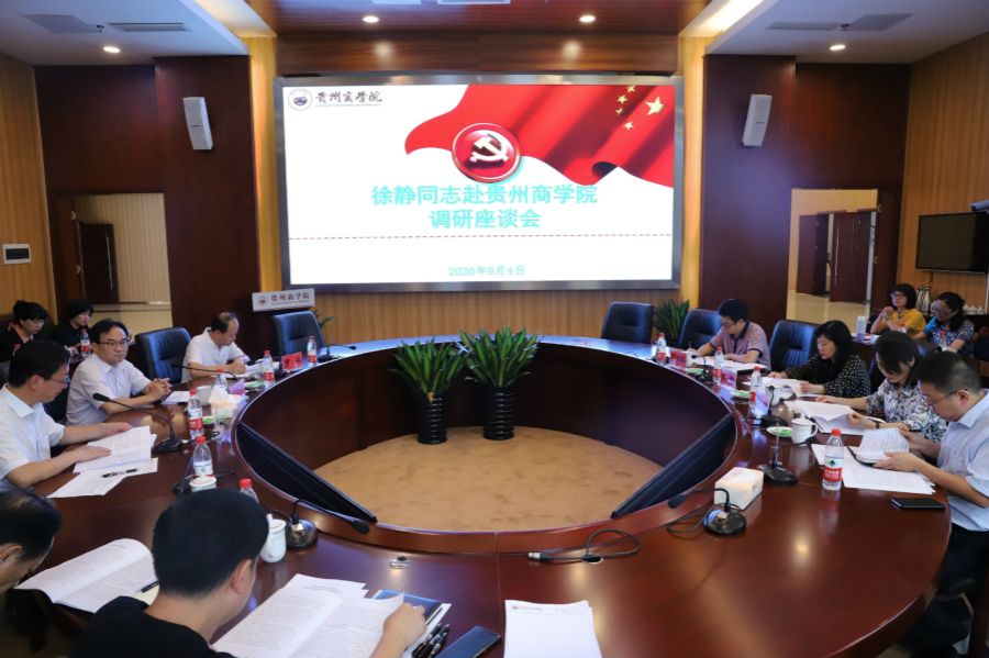 最后,徐静作了讲话。徐静指出,贵州商学院党委对意识形态工作高度重视,敏感度高、统筹力强,思路清晰、措施有力,学院意识形态工作成效明显;学院思想政治工作构建了“12345”工作体系,总结凝练到位,特色亮点突出,思政工作开创了新局面;马克思主义学院的建设发展逐年加强,建立了一支高水平的师资队伍;学院科研能力近年来增长较快,在一些国家级、省级课题的申报上取得重大突破。她强调,在今后的工作中,贵州商学院要进一步加强党对意识形态的领导和指导,把好方向,守住阵地,认真贯彻落实意识形态工作责任制,多元主体推进,多种阵地建设,多举措并举,切实推动学院意识形态工作向纵深推进。学院思想政治工作要在“12345”工作体系基础上,进一步开拓创新,进一步开创思想政治工作的新局面。要加强科研工作研究,不断提升学院科研能力。要发挥学院专业优势和人才优势,打造优秀科研团队。要围绕中心,服务大局,聚焦省委省政府决策部署,把论文写在贵州大地。徐静表示,对学院提出的希望省委宣传部给予帮助支持的事项,省委宣传部在工作职责范围内,将尽力予以帮助解决。