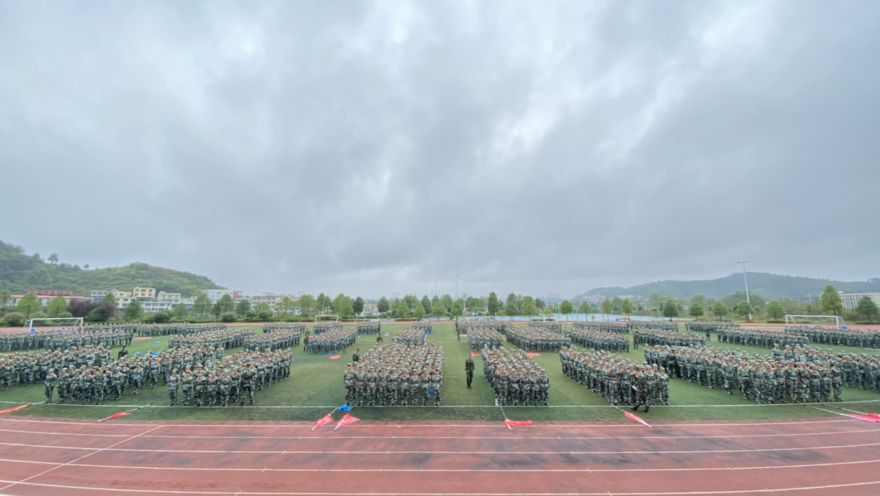 2020年9月17日下午,我院2020级新生军训开训仪式在田径运动场隆重举行。学院党委副书记陈应勇、武警贵阳支队四大队大队长刘旺君出席,学院学工部(武装部)及各二级学院主要负责人、2020级新生班辅导员参加仪式,学工部(武装部)副部长杨通宇主持开训仪式。