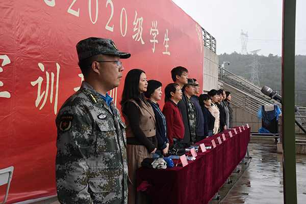 在嘹亮的解放军军歌声中,杨通宇宣布2020级新生军训开训仪式结束,训练开始。2020级新生身着迷彩戎装开始为期2周的军事训练。