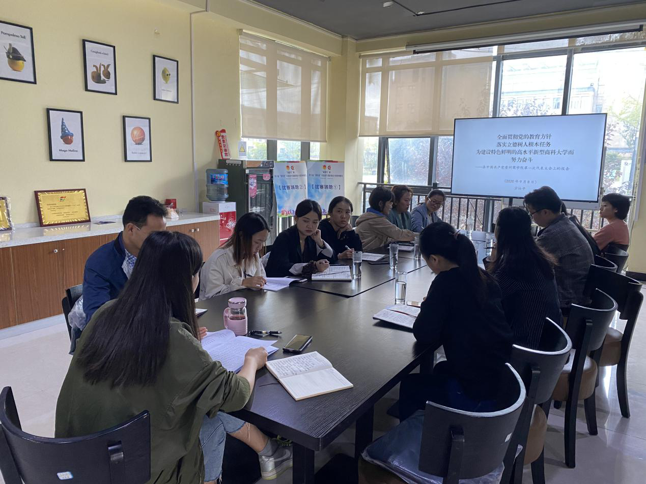 会上,全体团干共同学习了方仕平书记在第一次党代会上代表党委所做的《全面贯彻党的教育方针落实立德树人根本任务为建设特色鲜明的高水平新型商科大学而努力奋斗》报告。吴晶鑫作为党代表从大会主题、学院五年来所取得的工作成绩、今后五年发展的主要目标、任务以及九大发展举措、以政治建设为统领全面加强党的建设以及认真学习贯彻纪委工作报告有关精神等几个内容进行领学,传达了大会精神,并对进一步宣传学习贯彻学院第一次党员代表大会精神提出工作要求。